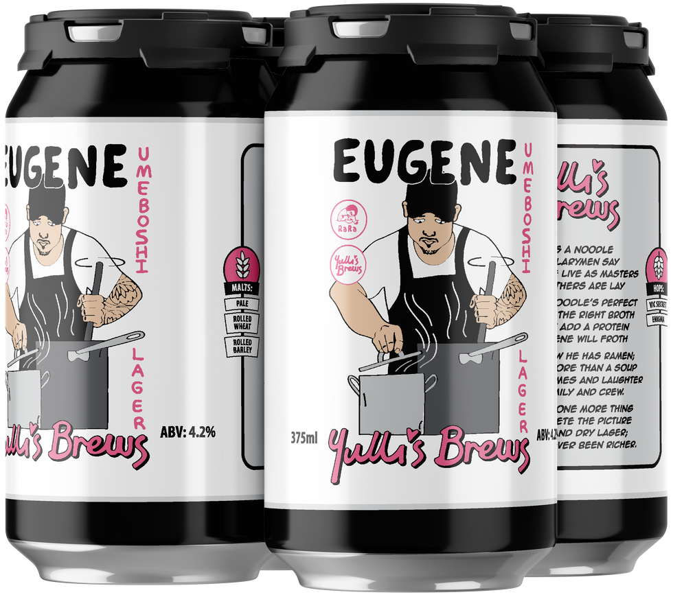 Eugene Umeboshi Lager is a light and dry unfiltered lager tailor made for Ramen consumption. Freshly pureed Apricots, Umeshu and Umeboshi were added into the brew at various stages of fermentation providing a bright fruit aroma and refined sweetness across the mid palette. Eugene finishes ultra clean and pairs incredibly well with savoury broths and soups.